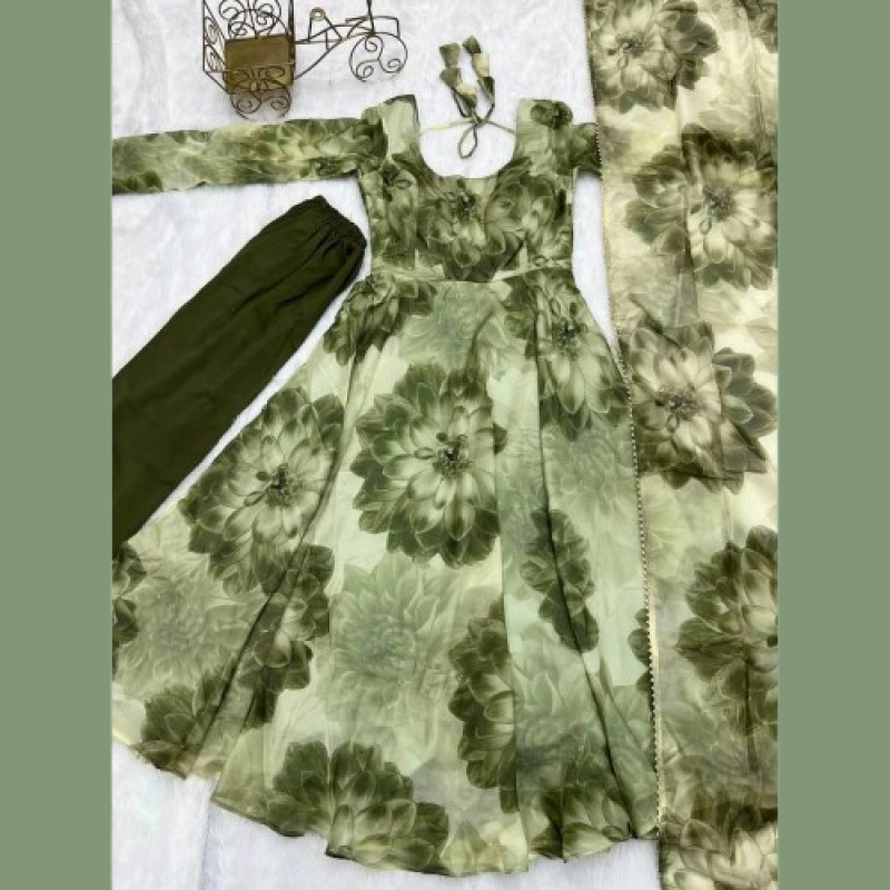 خدمة FASHIONABAL TABBY ORGANZA SILK بطباعة 3D بستان بلون مع أخضر دوباتا