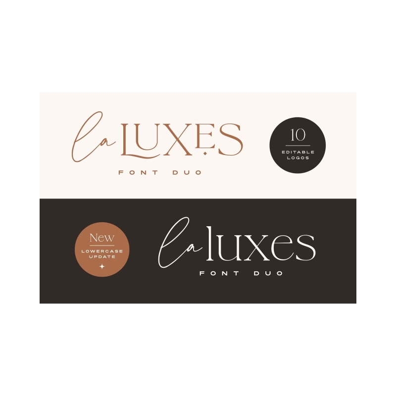 دلل نفسك في الطباعة الفاخرة مع La Luxes. ثنائي خط كلاسيكي يتكون من نص أنيق و Serif غني بالأحرف المركبة. يتضمن هذا المنتج أيضا 10 قوالب شعار إضافية ، مما يتيح لك تحرير التصميمات التي تراها في الصور أعلاه بسهولة وإنشاء شعارات مذهلة في دقائق. (تتطلب قوالب الشعار فتح Adobe Photoshop أو Adobe Illustrator).