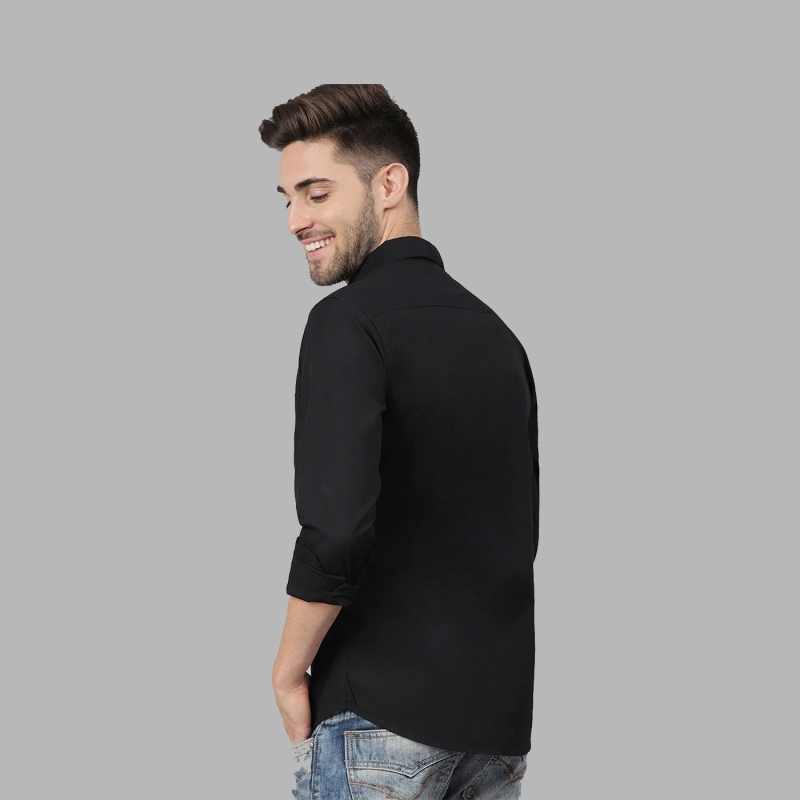 الرجال أسود سليم صالح قميص كاجوال