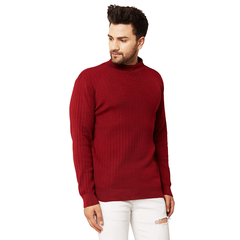 Men High Neck Full Sleeve Winter Woolen Sweater,Red