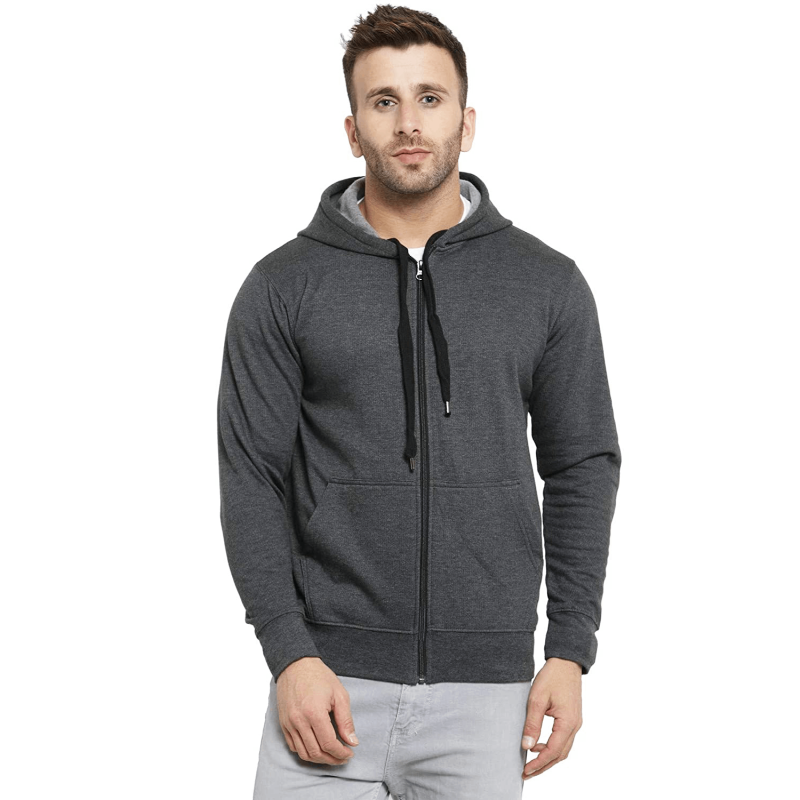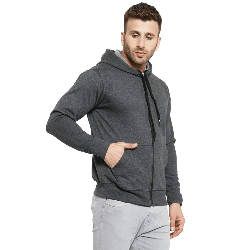 Men's Cotton Pullover Hoodie Sweatshirt with Zip - Charcoal