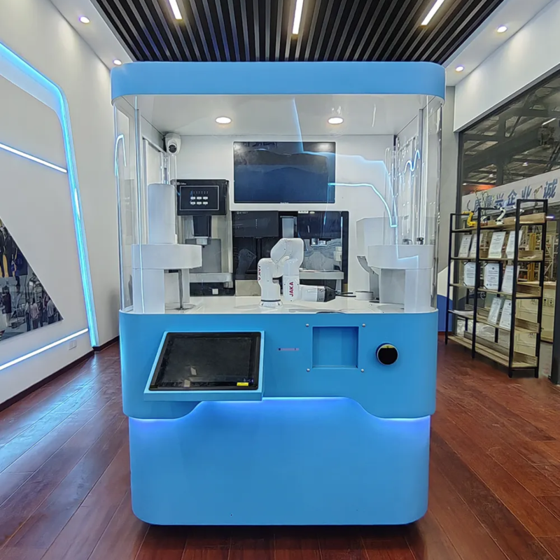 • Effortless Coffee-Making Experience: This robotic coffee vending machine, powered by a 6-axis collaborative robot, allows users to enjoy freshly brewed coffee with minimal effort, making it an ideal addition to hotels, restaurants, and cafes.