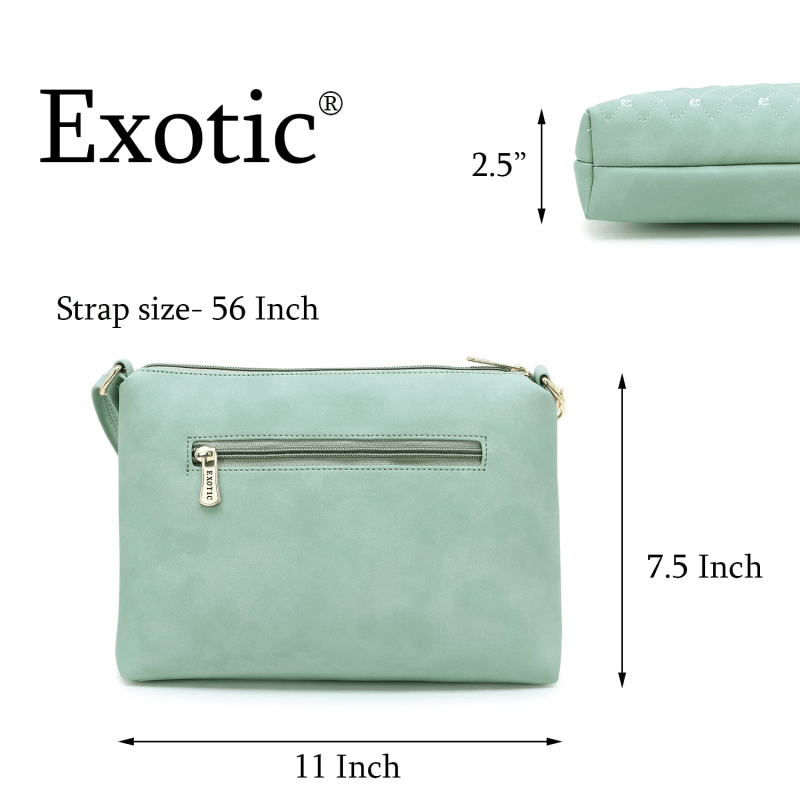 This Sling Bag Is made By Exotic Brand.Stylish and durable for modern Girls/women is this beige colored Sling Bag. Exotic presents this Sling Bag which is perfect to carry at work, Party or adorn casually Perfect to stow your essentials and is detailed with polished hardware for a sleek finish. Made From premium quality leatherette / PU / Synthetic Leather material that makes the bag sturdy and durable. Great for carrying your essential stuff with no worries of bag getting damaged.sturdy Accessories and Zippers make it a robust bag.