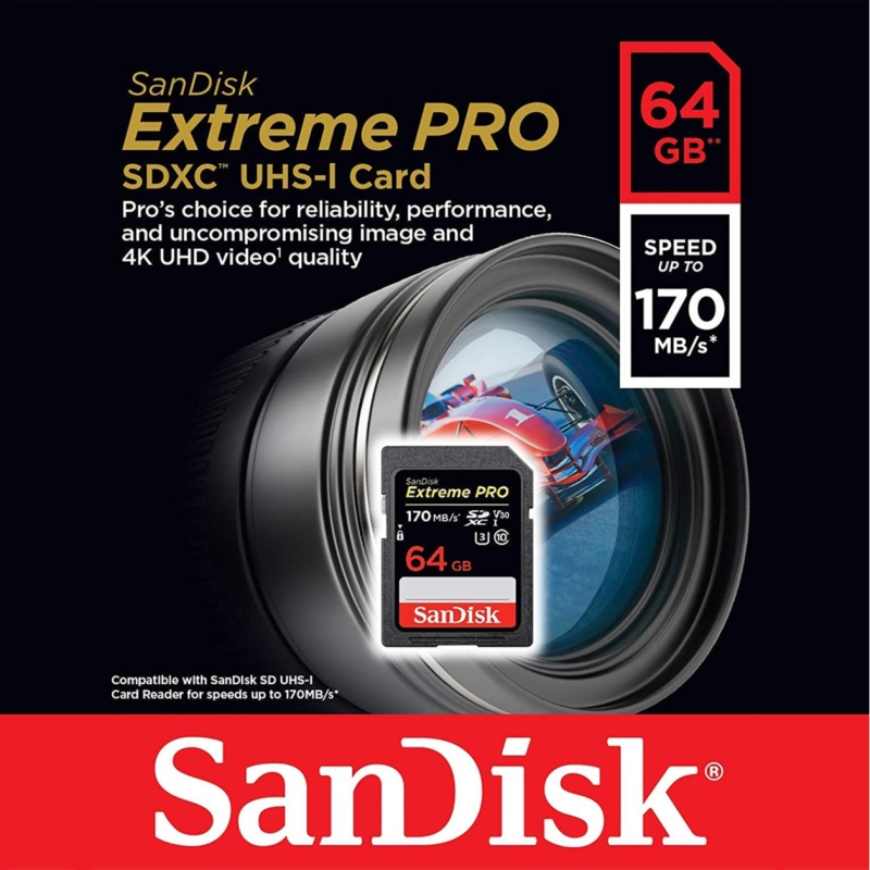SanDisk 64GB Extreme PRO SDXC UHS-I Card - C10, U3, V30, 4K UHD, SD Card