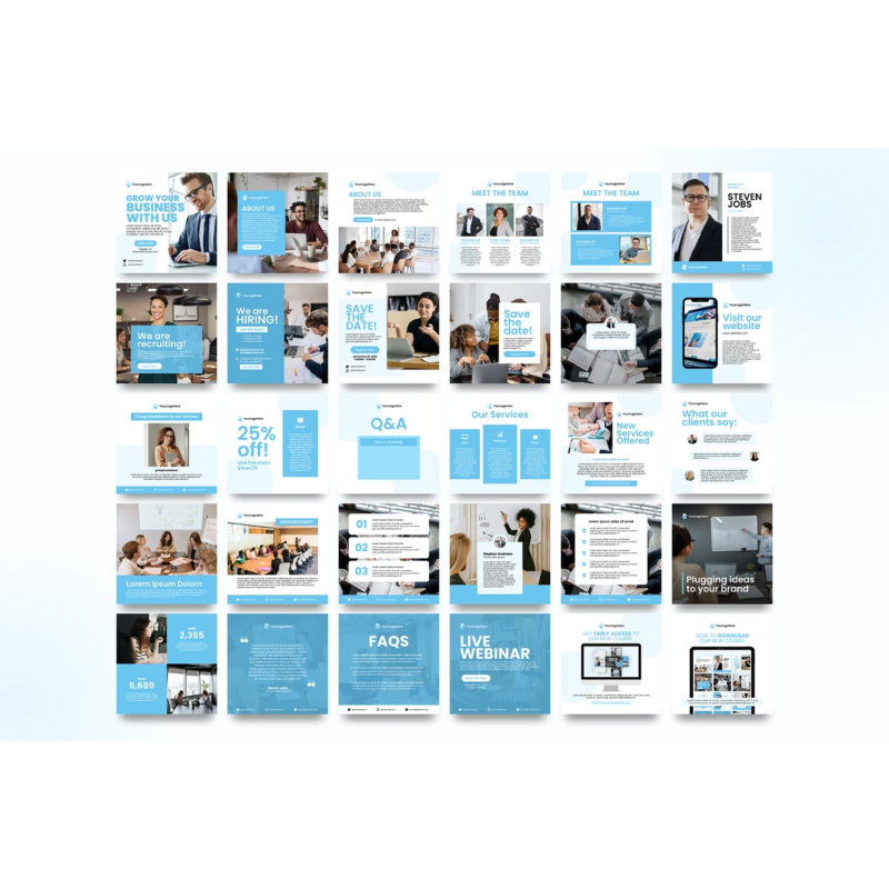 This Business Post Template is a pack of 90 editable Canva templates designed for business owners, agencies, entrepreneurs, and more. You can easily edit the colors, elements, images, texts, and many more to fit your branding. This will also help you increase engagement and give your social media accounts a more branded and consistent look.