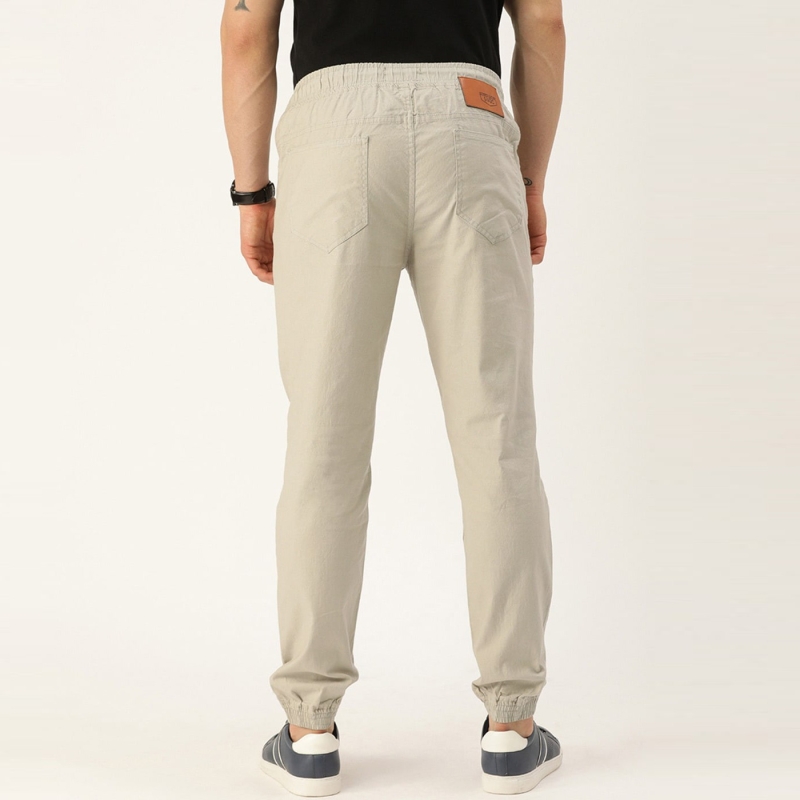 White solid mid-rise joggers, has a drawstring fastening, four pockets