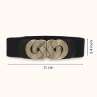 This stretchy belt is made up of 70% Polyester, 25% Elastane, 5% PU Leather and metal fastening buckle, easy and convenient to wear and take Off.