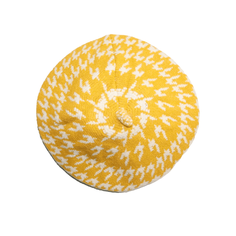 قبعة قبعة شتوية من قماش البيريه الفرنسي أبيض / أصفر