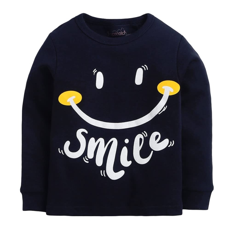 الحجلة للأولاد القطن الصلبة طباعة النص الأعلى وبيجامة مجموعة في اللون الكحلي