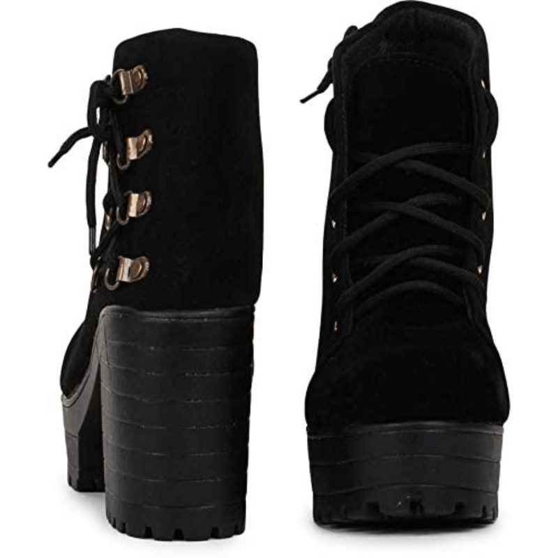 Women Side Lace Black Suede Boots